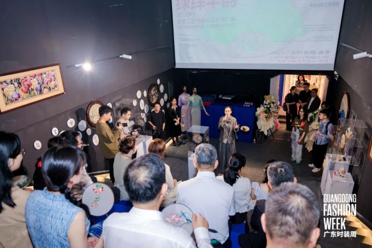 开幕式现场大咖云集,来自中国服装协会、广东省纺织服装行业协会、广东省工艺美术协会、广东省工业设计协会、广东白云学院国际时尚设计学院、世界绿色设计组织法国分会和深圳市跨境电子商务协会等多个专业组织及院校的领军人物齐聚一堂,就“非遗+绿色设计”的未来发展展开深度分享与展望。
