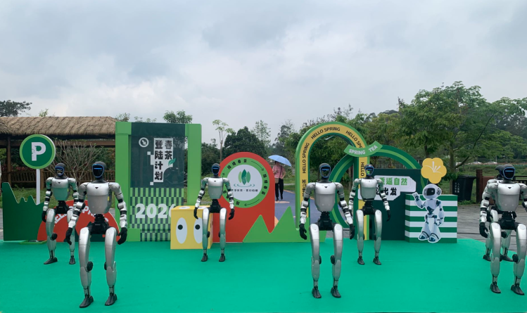 春日的柏塘万亩茶园,绿意层叠,茶香幽远。活动现场,机器人在茶垄间灵活穿梭,同步完成模拟采茶的动作。科技感十足的表演与漫山茶园春色相映成趣,为古老茶乡注入了满满活力,也成为现场一大亮点。